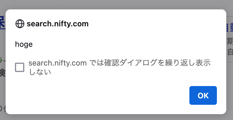 またwindow.alert()はいわゆる「無限アラート」などのいたずらにも容易に使用できてしまいます。