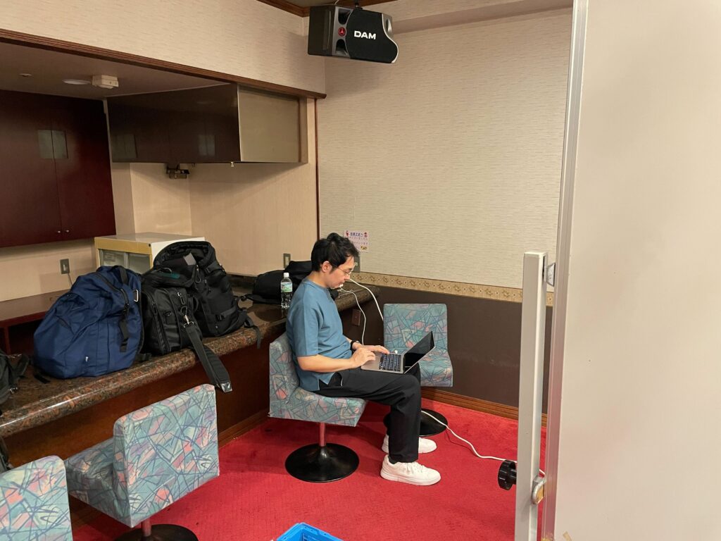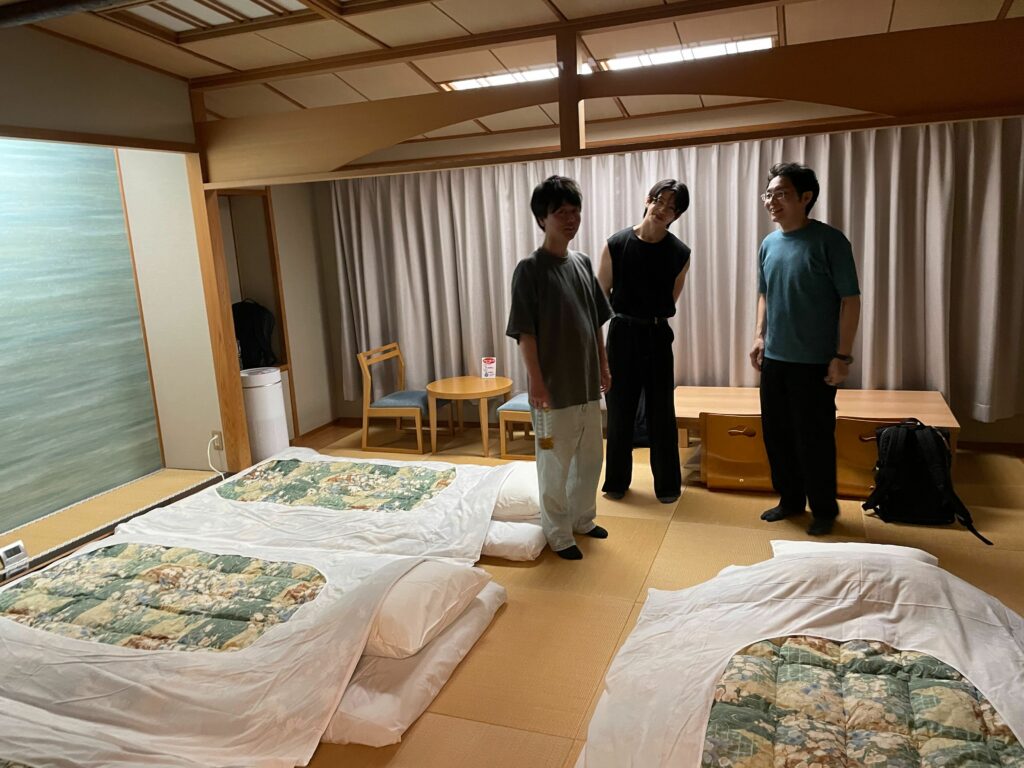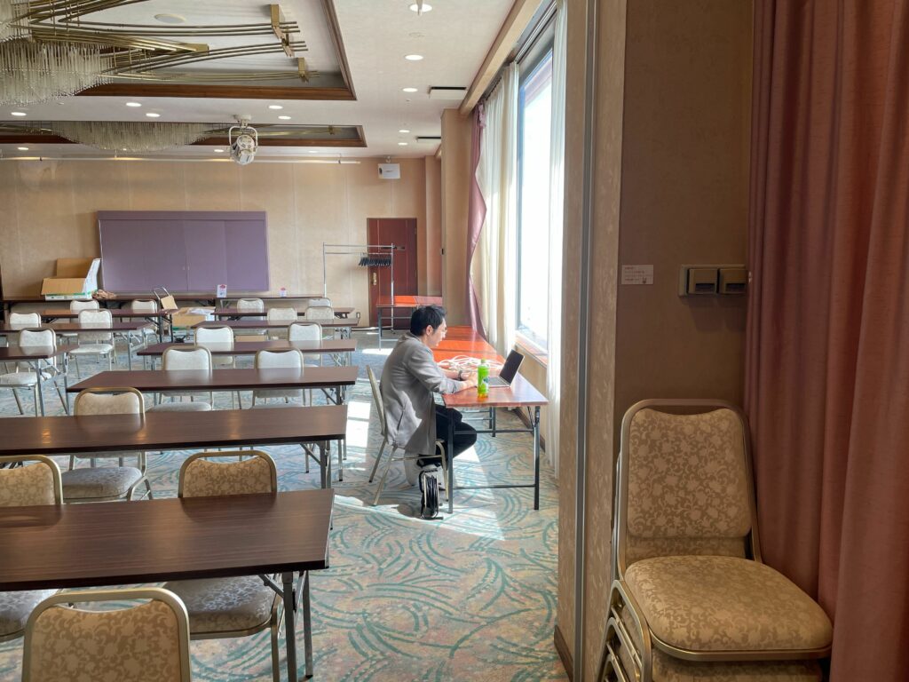 夕食前まで、2部屋に分かれて作業になっていたですが、宿のご厚意により1部屋で作業を行うことになりました。(2部屋に分かれて作業させていただいたのもこちらの我儘を汲んでいただいた、宿のご厚意です)