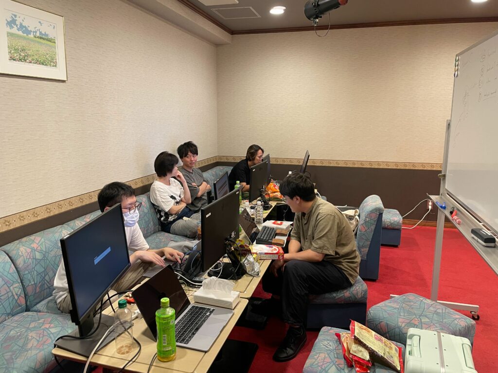 一部、余裕のあるメンバーはノスタルジー風味のエモい写真を撮ったり、館内の写真を集めたりしていたようですが、それ以外は他チームの歓声に怯える以外は鬼気迫る表情で開発を続ける面々でした。